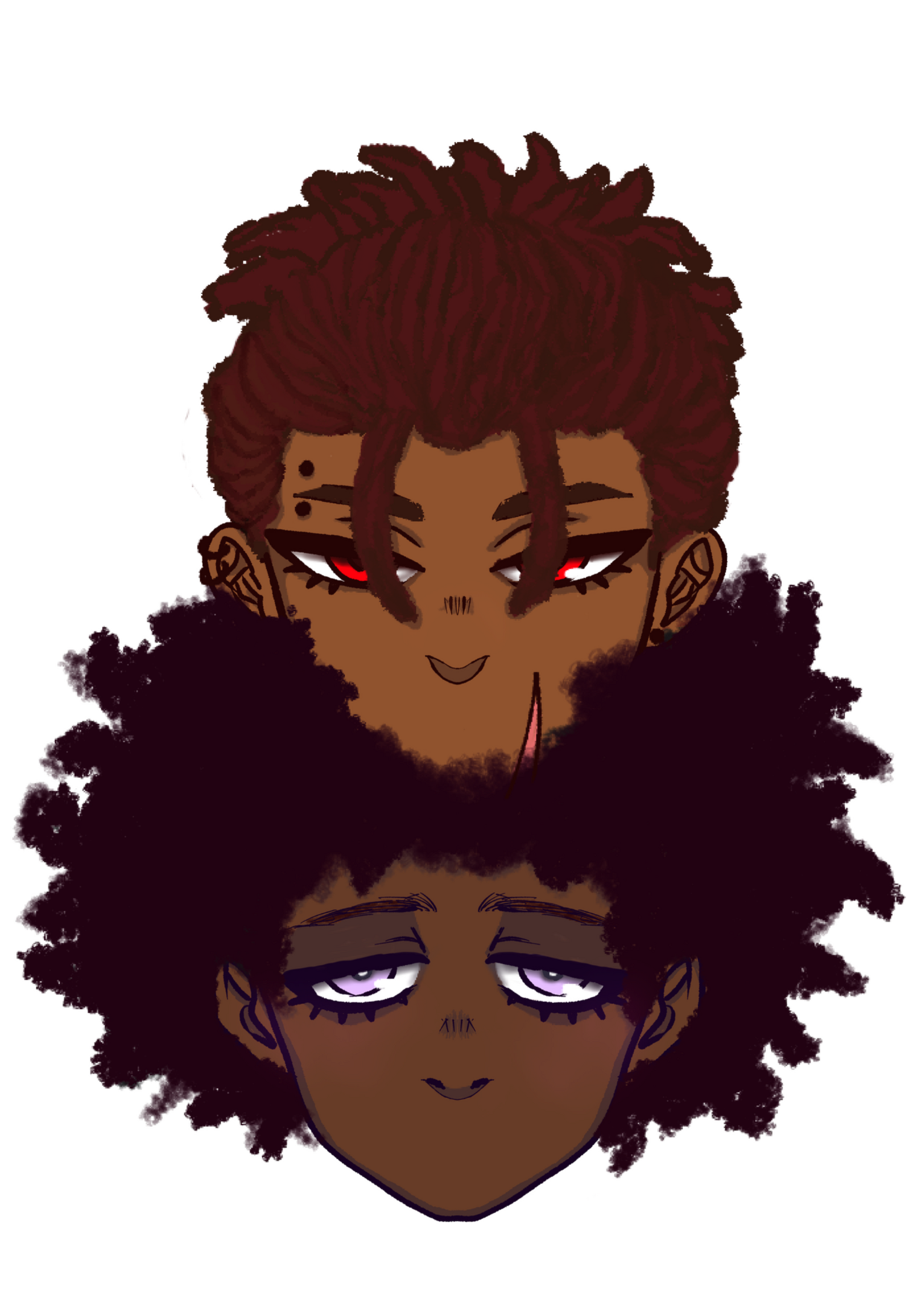 My name is Faust and I am the artist behind Ettu Caina.I create original pieces that explore mental conflict and raw feelings, often using moody imagery to make these complexities tangible to the eye. My original work aims to provoke introspection and emotional response with shadowy tones and figures.When it comes to my fanart, the mood is much brighter and takes on a dynamic energy and more comical tone that suits some of my favorite media/series