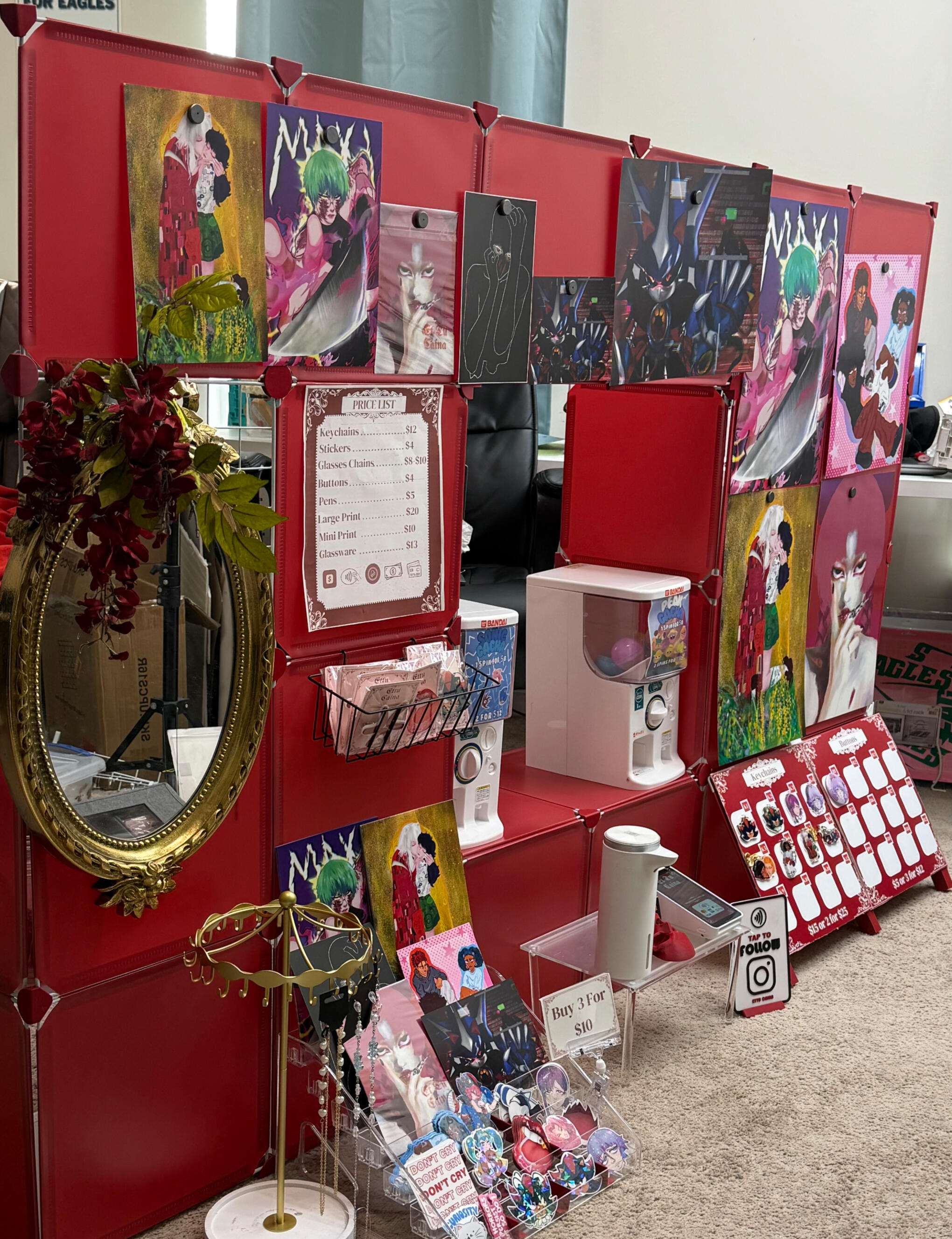 A small overlook of catalog contains handmade jewelry pieces such as earrings, necklaces and glasses chains, stickers, keychains, accessories such as my best seller “Angry Vein Bulge” hair clip that modeled and printed myself and to come.
